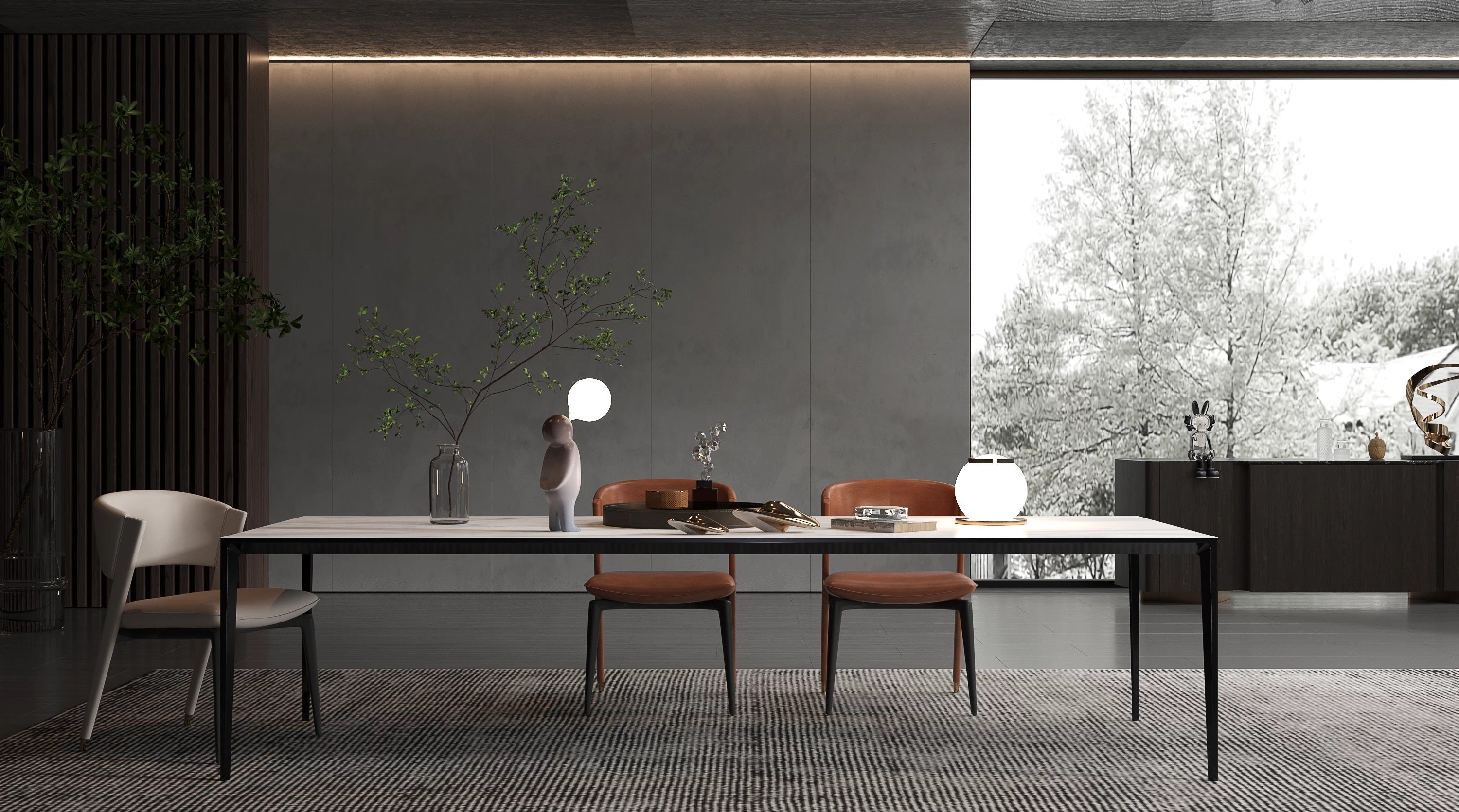 Innovation S - Minimalist Premium Porcelain Dining Table - Black Sandstone / Black